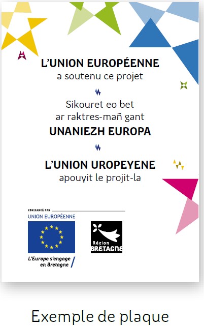 Pour tous les projets, la Région Bretagne fournit à la fin de l'opération des plaques permettant d’afficher de manière pérenne la dimension européenne du projet.