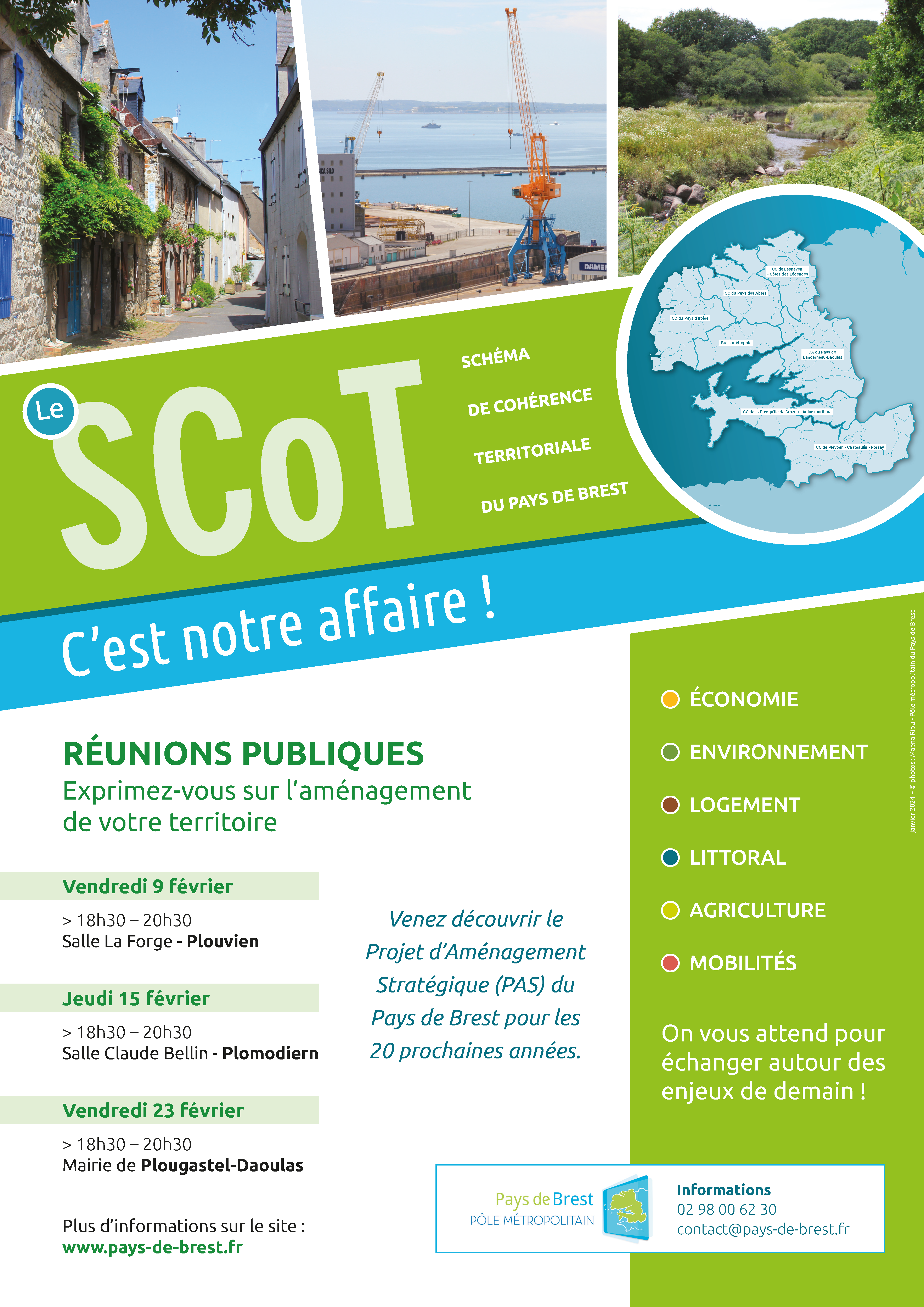 Dans le cadre de la procédure de révision du SCoT du Pays de Brest, le Pôle métropolitain organise un cycle de trois réunions publiques pour présenter le projet d’aménagement stratégique (PAS) en février prochain.