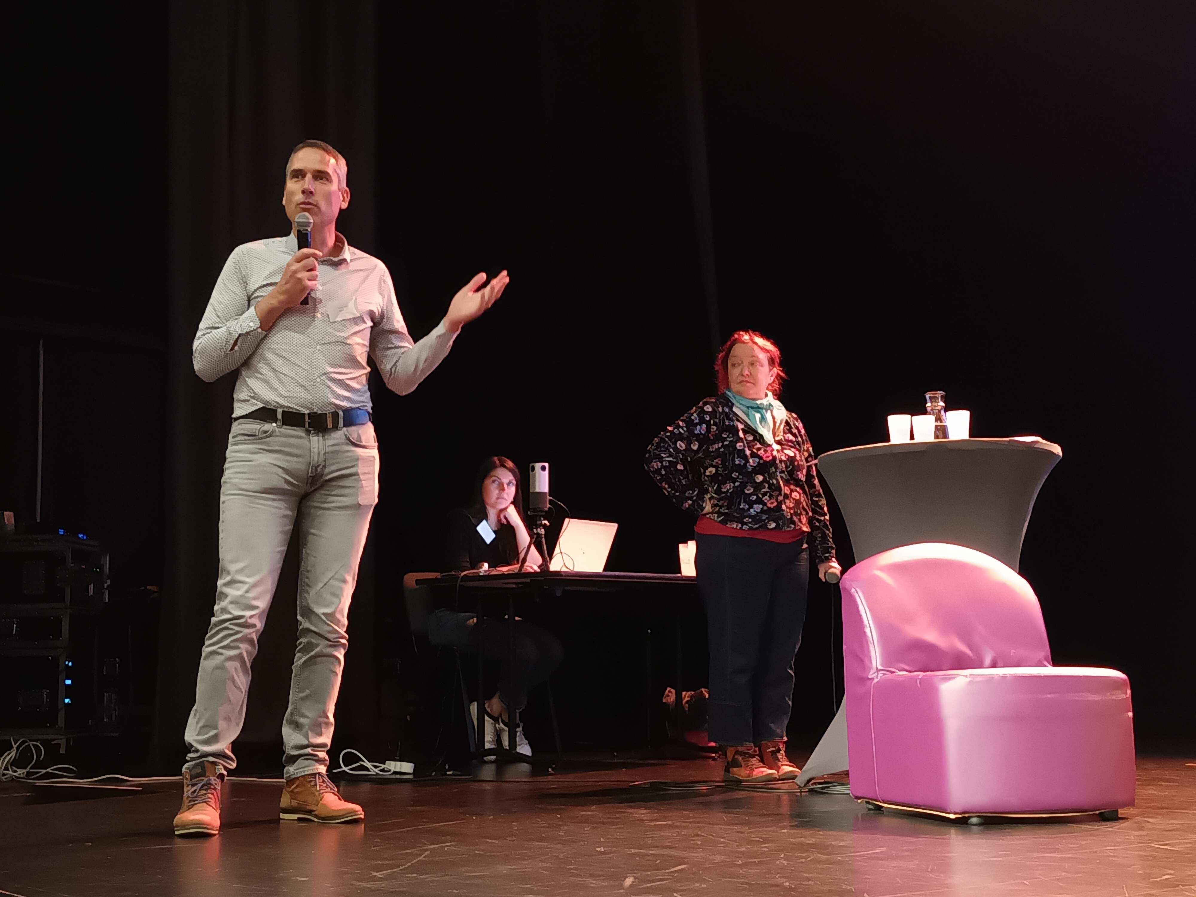 - Roger Héré, Vice-Président en charge des transports à Morlaix Communauté, Lénaig L'Haridon, Co-directrice de l'association Ehop, et Jeanne Rogeau, chargée de projet MorlaixCovoit